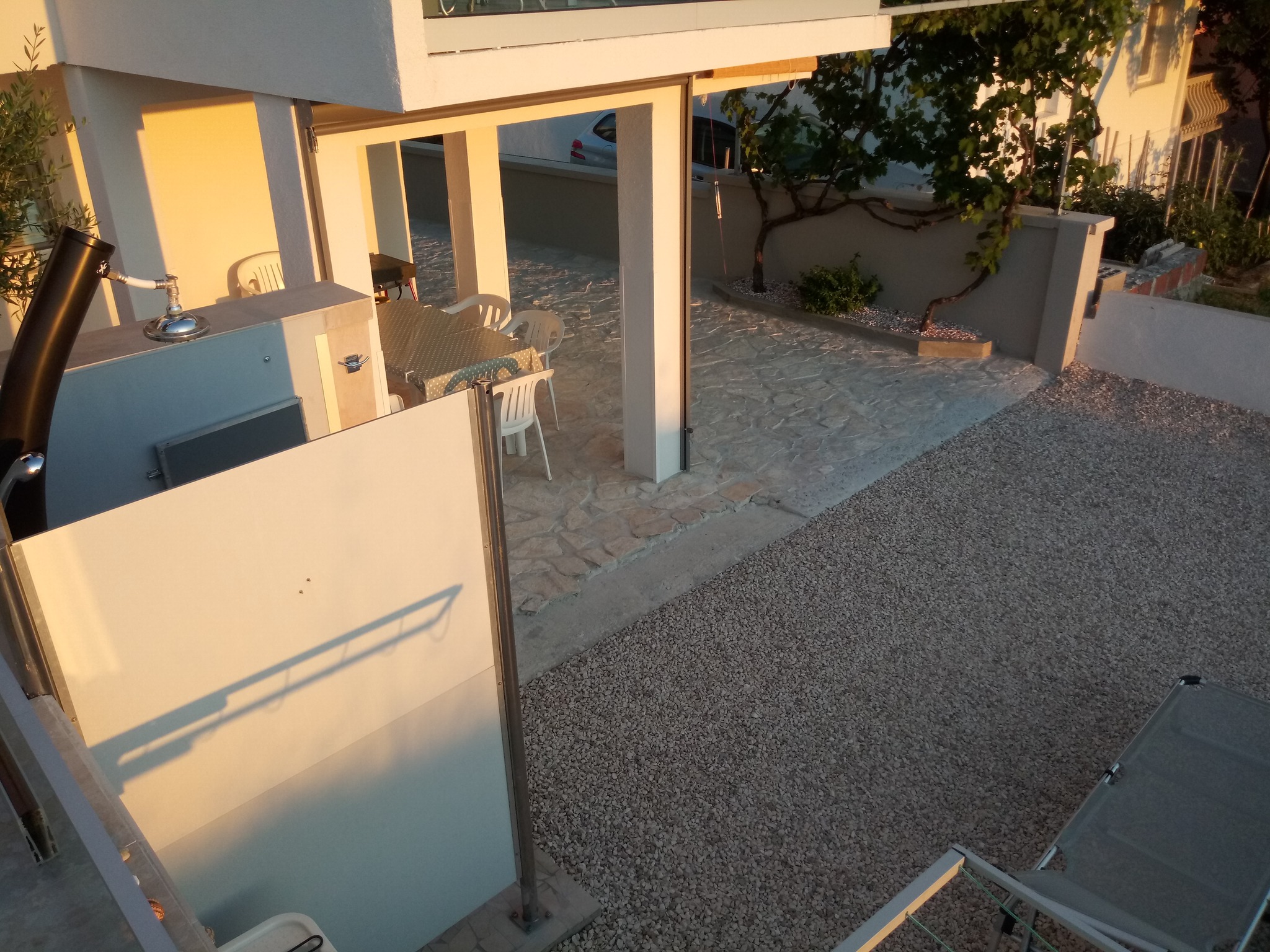 Prav tako pa imata oba aparatmaja zunanje kabine s tuši in toplo vodo (vsak za sebe).