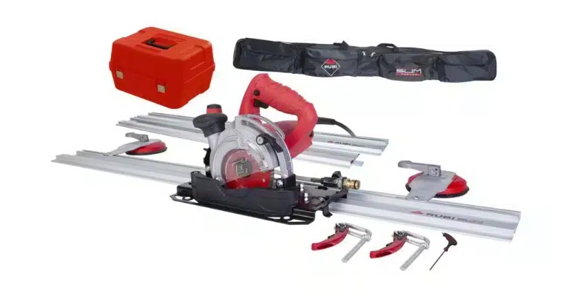 Krožna žaga za suho in mokro rezanje keramičnih ploščic in naravnega kamna ter komplet vodil za ploščice velikega formata. Na zalogi pri dobavitelju.