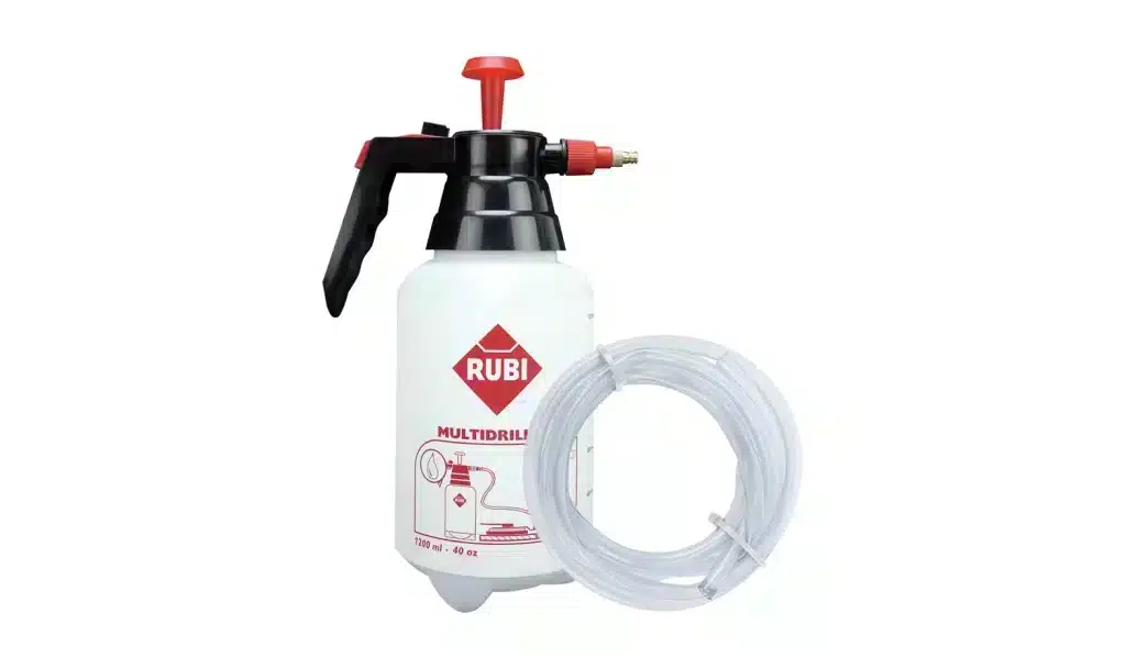Rezervoar za vodo je dodatna oprema za vodilo RUBI MULTIDRILL. S pomočjo posode in nastavka je zagotovljeno popolno hlajenje med vrtanjem. Posodo z izdelkom lahko preprosto priključite s cevjo.